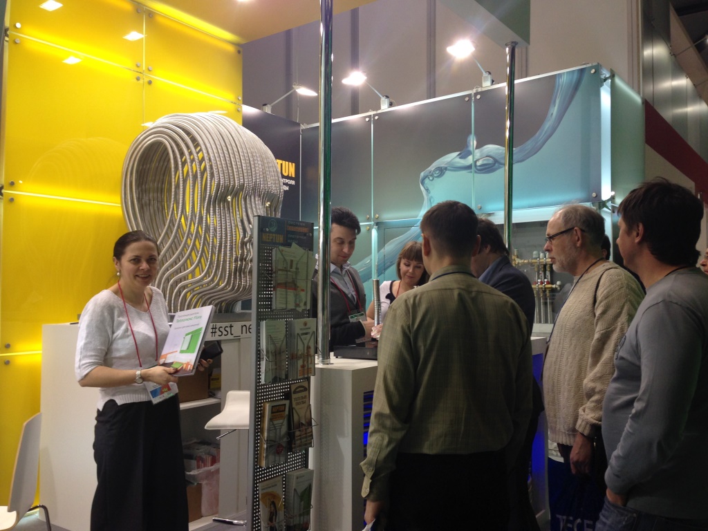 Основой экспозиции «ССТ» на Aqua-Therm St. Petersburg 2015 стали гибкие гофрированные трубопроводы из нержавеющей стали Neptun IWS и решения на их основе. Выставочный стенд, оформленный с применением труб и фитингов Neptun IWS, вызвал большой интерес у посетителей.