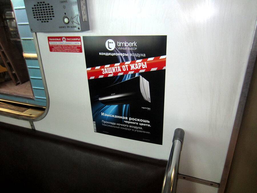 С радостью хотим сообщить, что в разгар климатического сезона 2014 с 1 июня по 17 июля 2014 года в московском регионе стартовала масштабная рекламная кампания, направленная на поддержку продаж ассортимента торговой марки Timberk по направлениям «бытовые кондиционеры воздуха» и «водонагревательная техника». Для ее реализации были выбраны несколько рекламных каналов, которые по своему охвату могут считаться наиболее эффективными. В вагонах поездов линий Московского метрополитена были размещены стикеры формата 30х40 см. и рекламные щиты на эскалаторных сводах формата 1,2 х 1,8 м. Макеты выполнены в единой концепции и отражают центральный слоган рекламной кампании по кондиционерам этого сезона - «Защити себя от жары!».