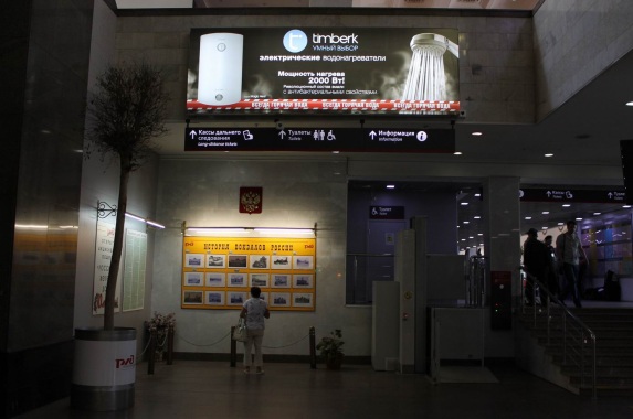 Рекламные имиджи по водонагревателей Timberk размещены на шести московских железнодорожных вокзалах и внутри салонов городского транспорта.