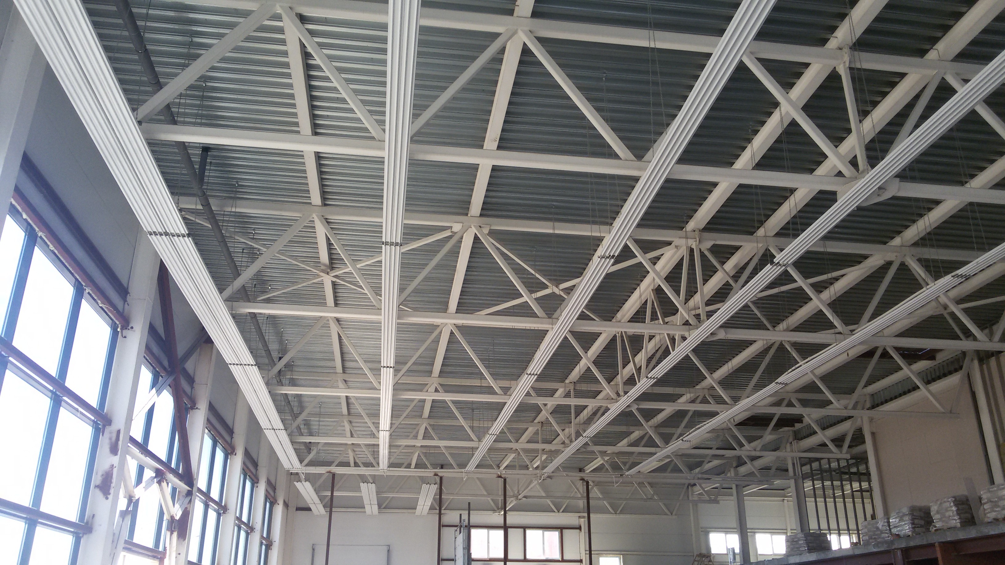 Водяные потолочные инфракрасные панели отопления «ТЕПЛОПАНЕЛЬ» ТП-1 и ТП-2 в строящемся автосалоне. Запуск системы планируется осенью 2015 года.