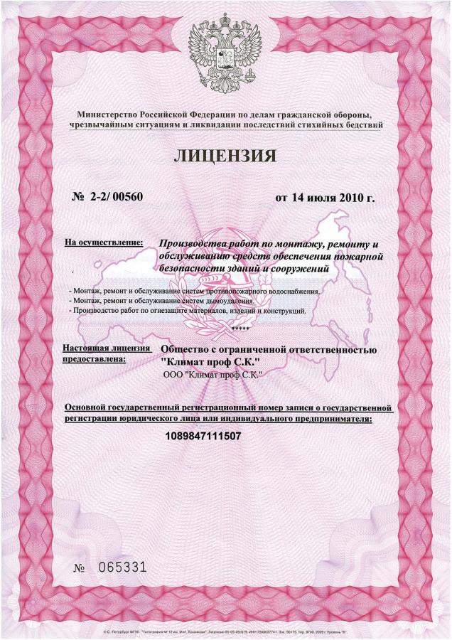 Лицензия на осуществление работ по монтажу, ремонту и обслуживанию средств обеспечения пожарной безопасности зданий и сооружений