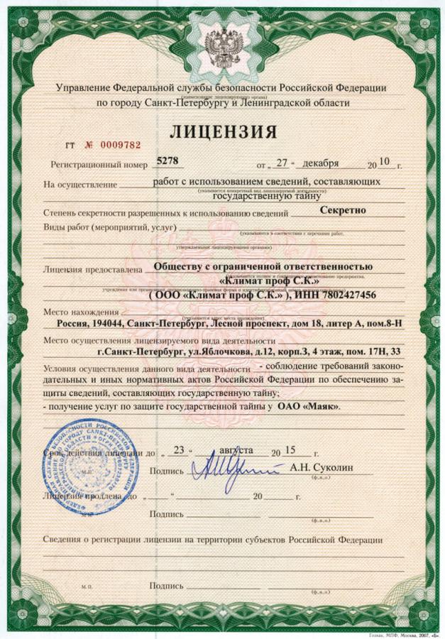 Лицензия на осуществление работ с использованием сведений, составляющих государственную тайну