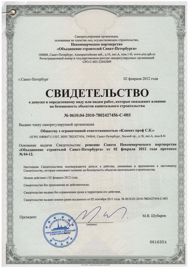 Свидетельство о допуске к работам, которые оказывают влияние на безопасность объектов капитального строительства (строительство)
