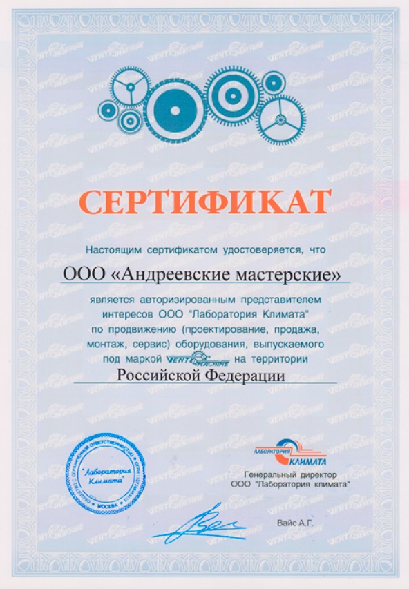 Посетив завод и показав устойчивые продажи, мы получили дилерский сертификат АВТОРИЗОВАННОГО ПРЕДСТАВИТЕЛЯ интересов одного из российских вентиляционных брендов.
