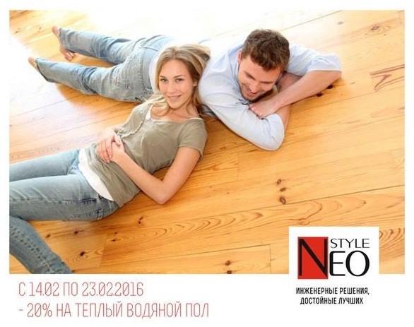В период с 14.02 по 23.02.2016 в честь уже полюбившегося и ставшего традицией праздника - Дня всех влюблённых, дарим каждому заказчику на систему тёплого водяного пола 20% -ную скидку!