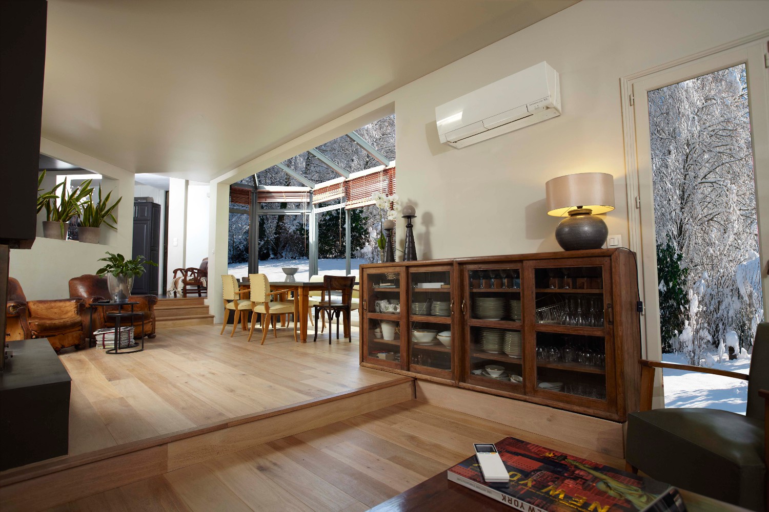 Для охлаждения дома используются передовые мультисистемы MITSUBISHI ELECTRIC с внутренними блоками серии Делюкс с классом сезонной энергоэффективности SCOP 5,1 (A+++).
