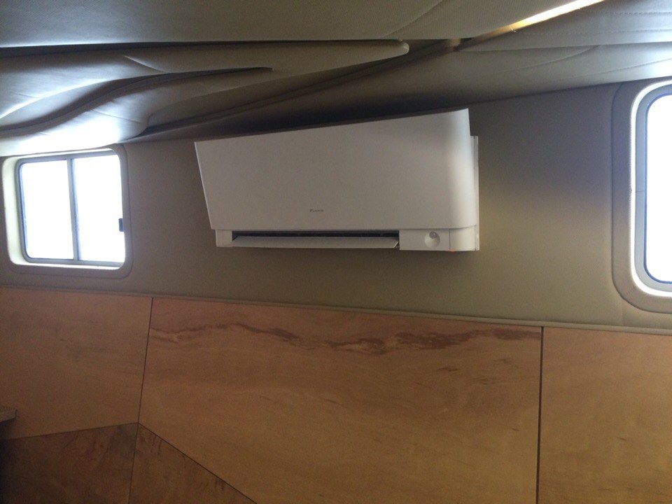 Корабль «сошел» со стапелей год назад. Система охлаждения воздуха выбрана от Daikin серии Emura с компактными внутренними блоками, с матовым кристально-белым корпусом и сглаженными ребрами.
