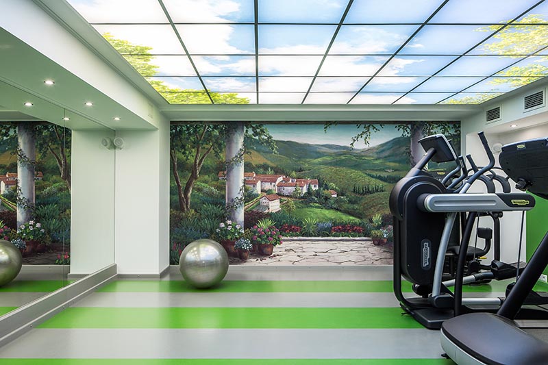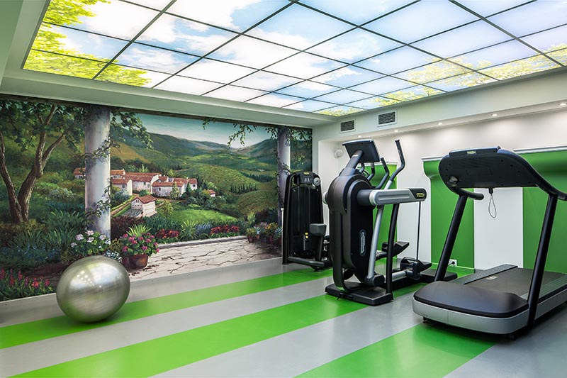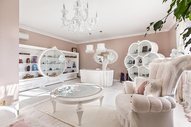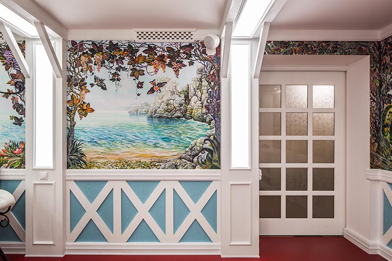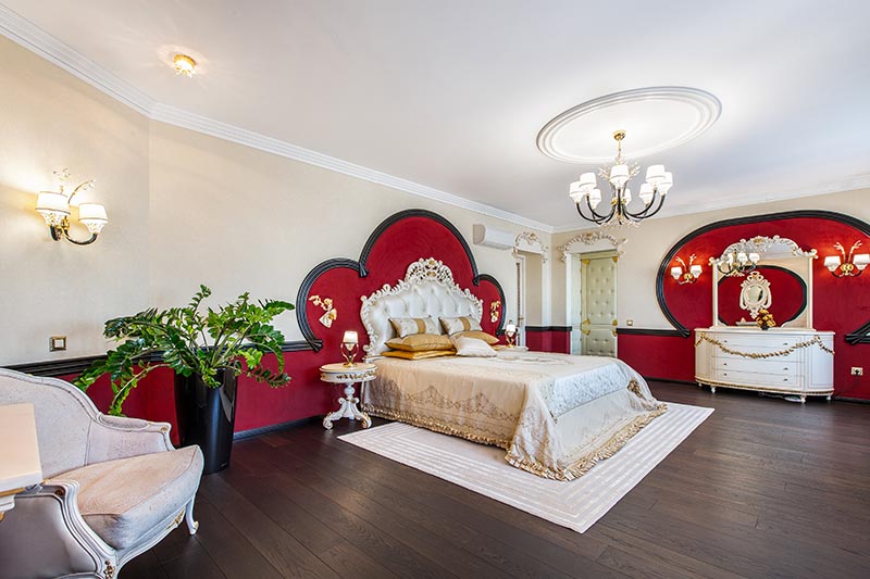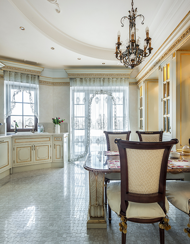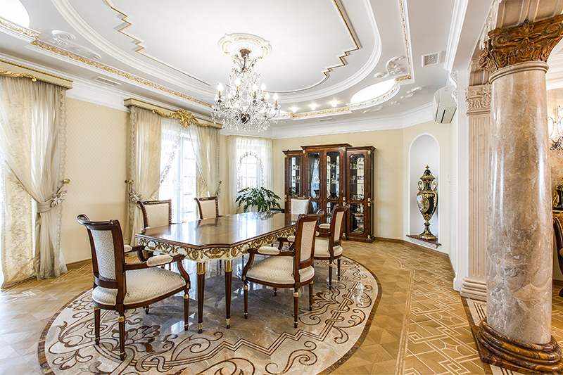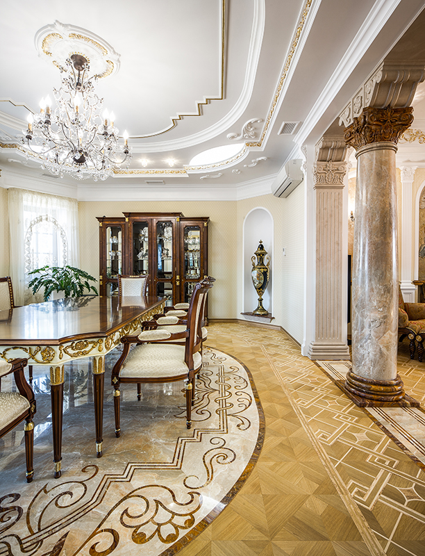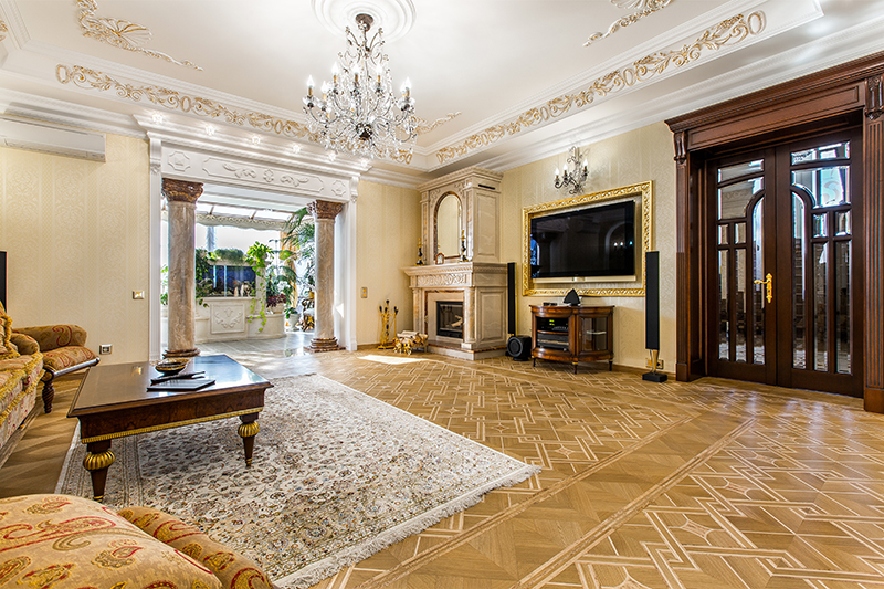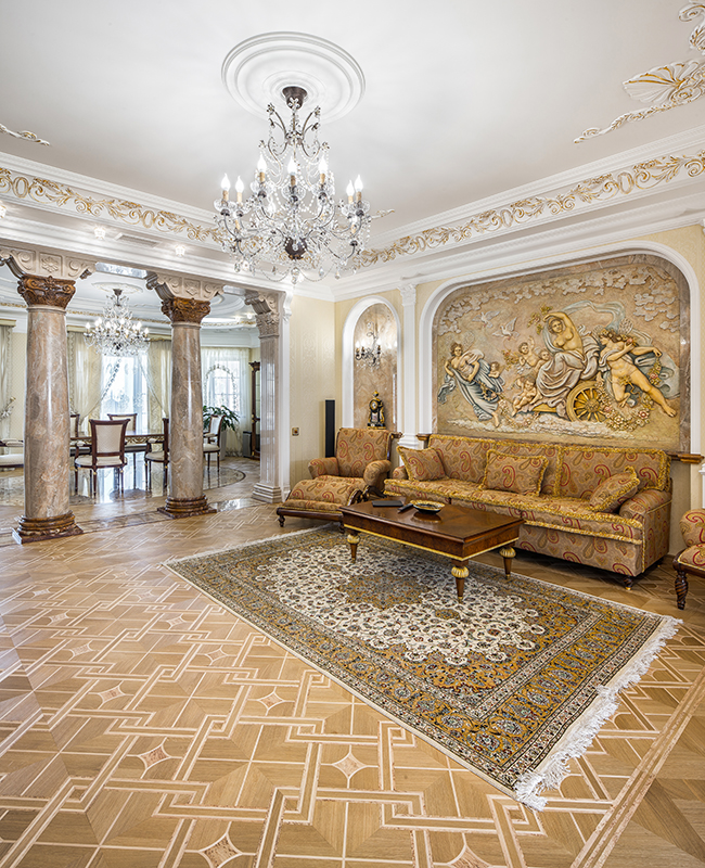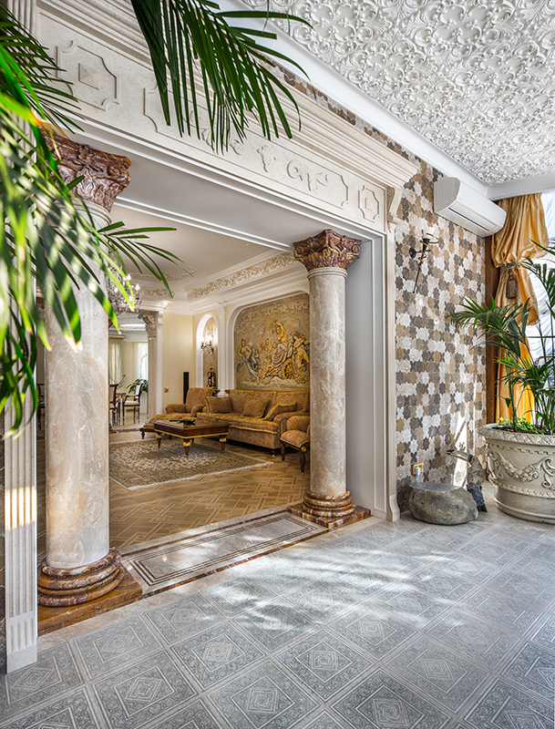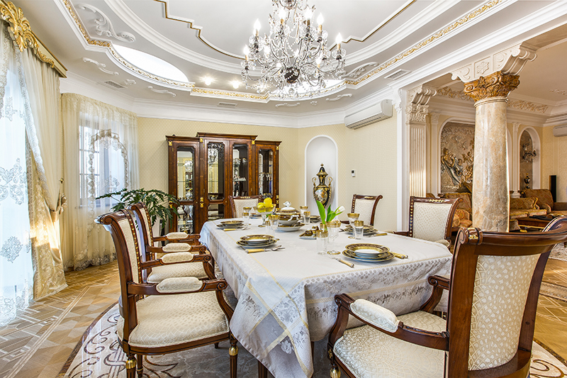 Система комфортной вентиляции с пароувлажнением заметна лишь только присутствием декоративных решеток из лепнины.