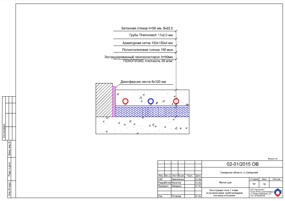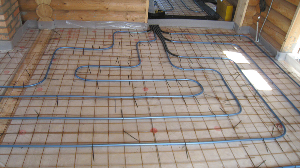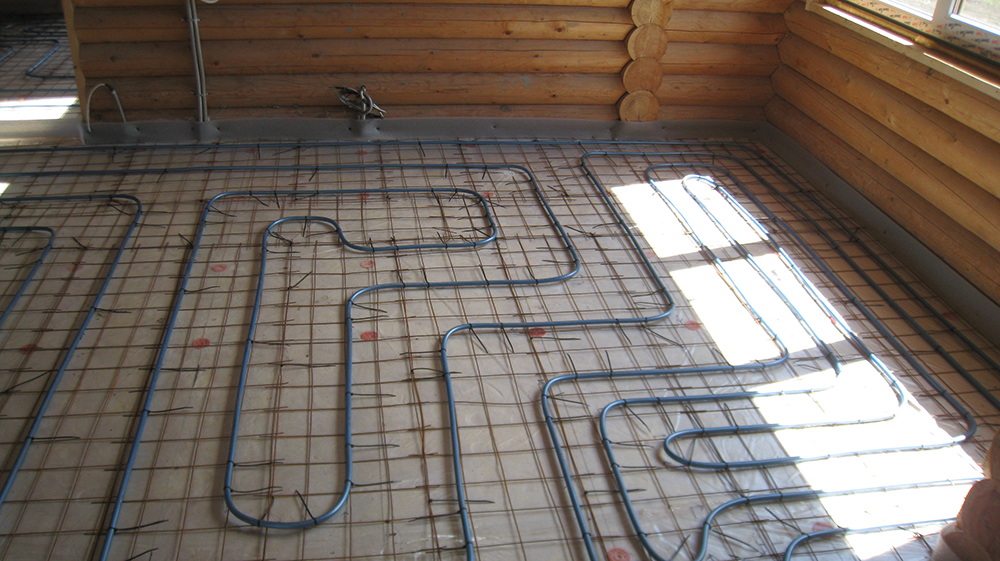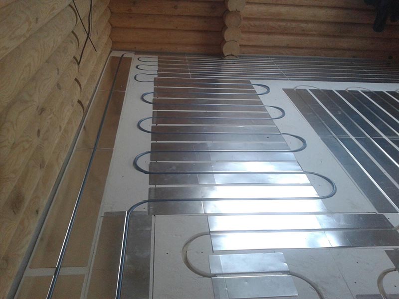 Согласно проекту, на первом этаже применена бетонная система водяного пола, на втором – сухая легкая настильная система 18мм.