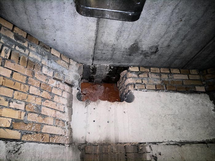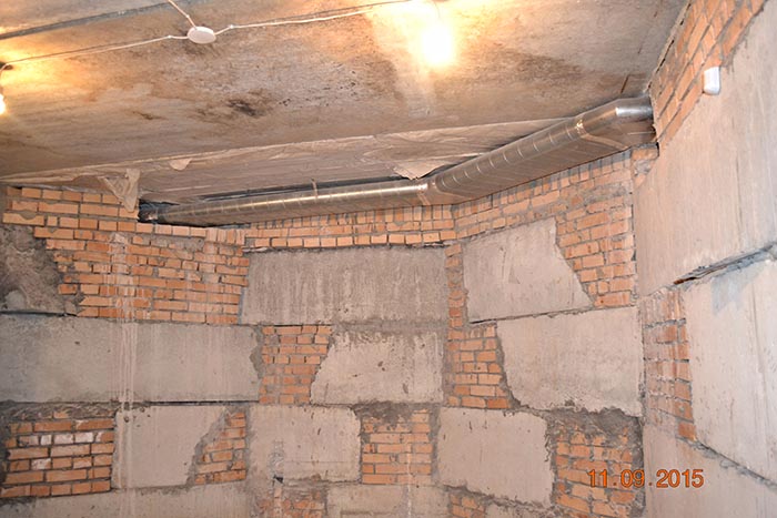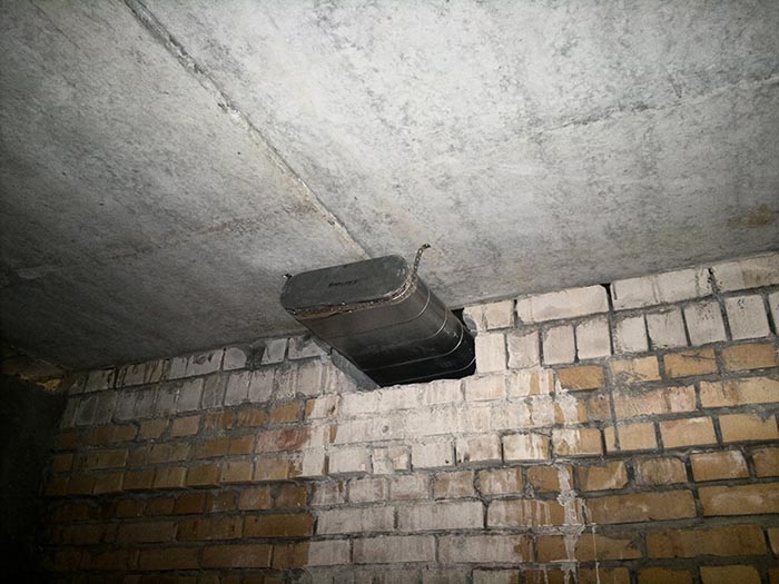 Отверстия в плите перекрытия под вентрешетки выполнены установкой алмазного бурения.