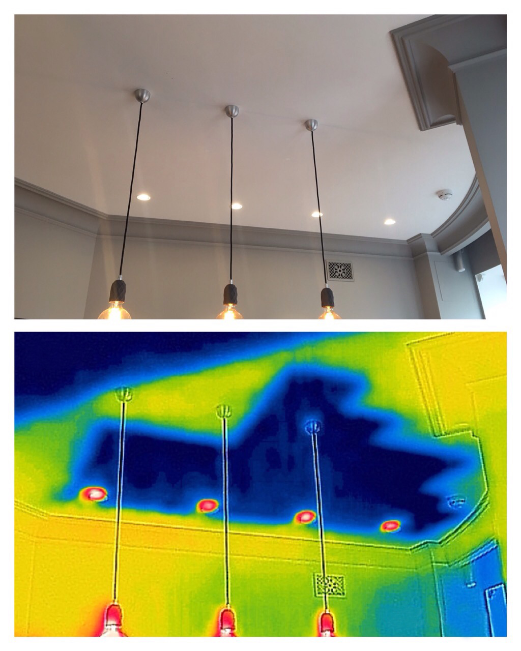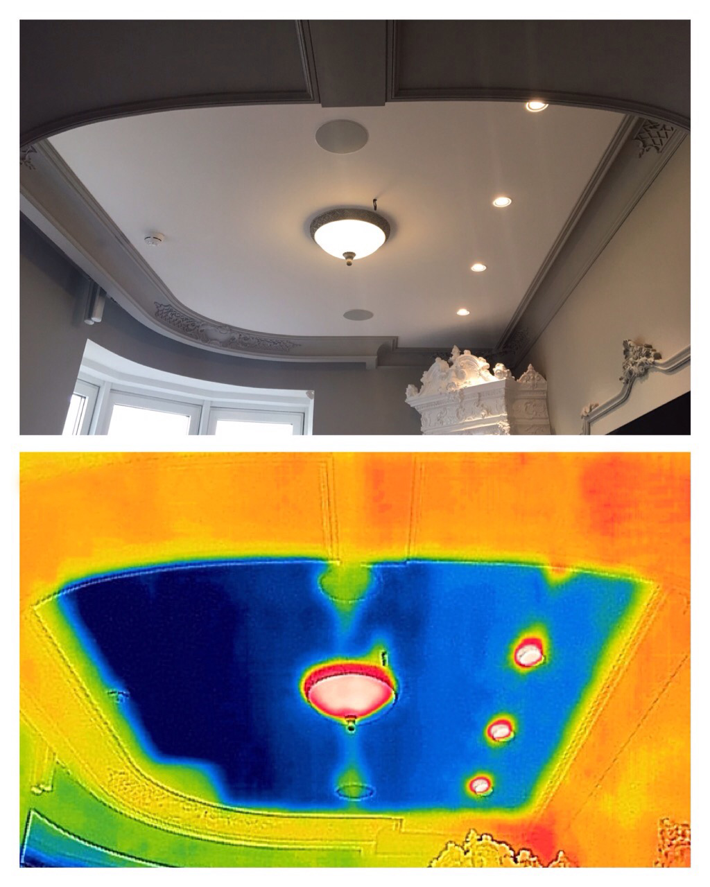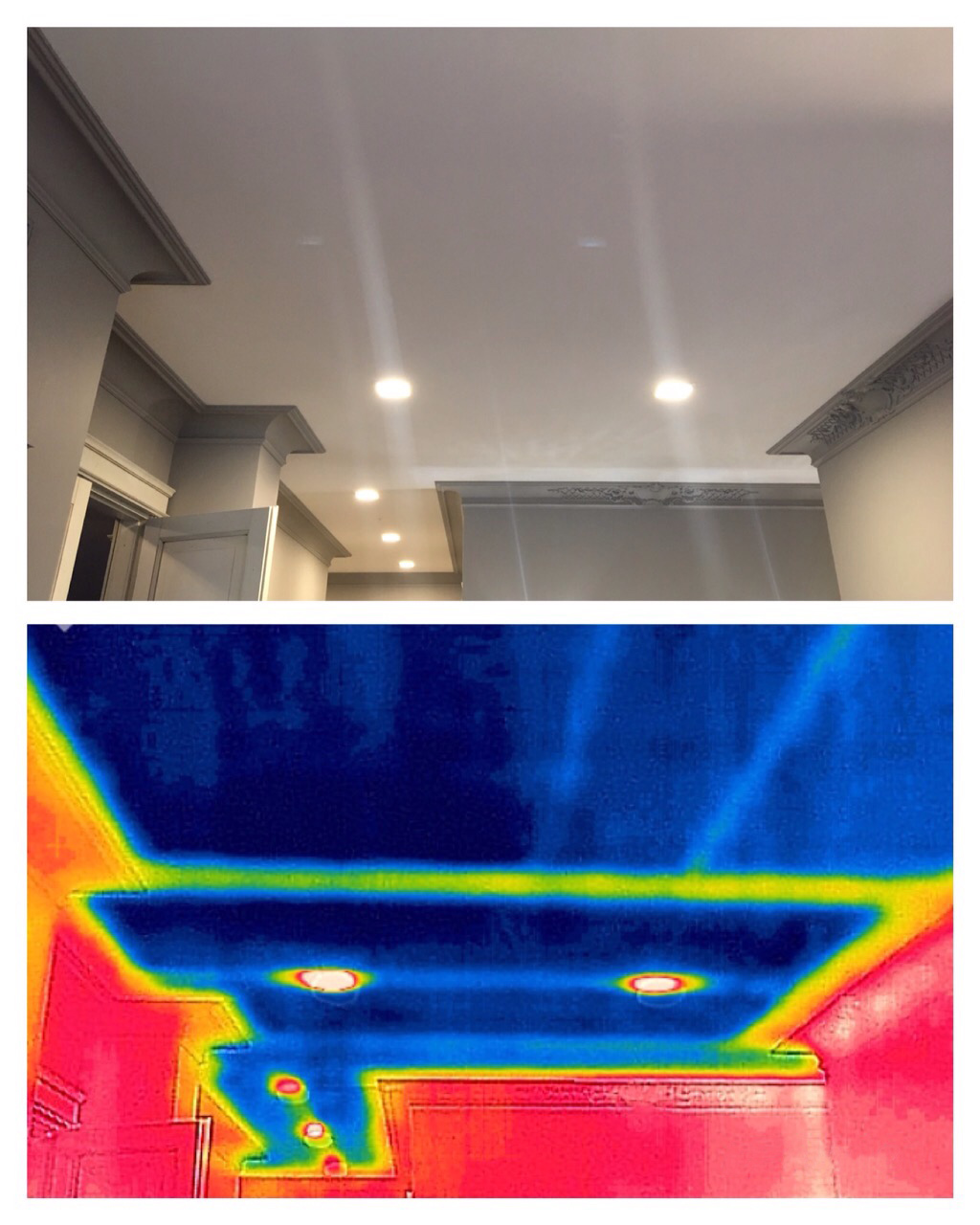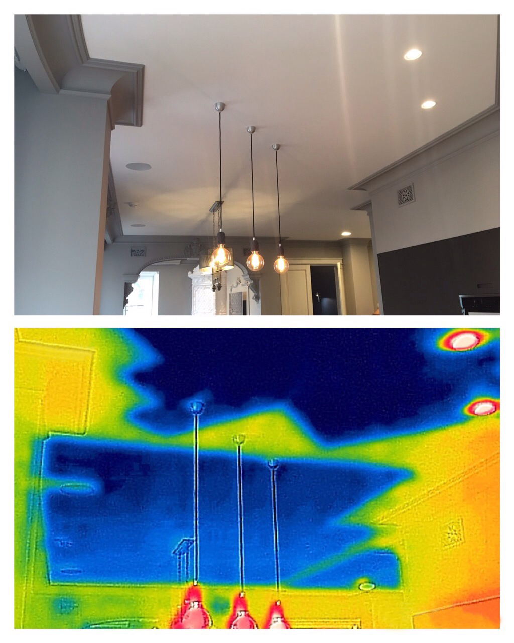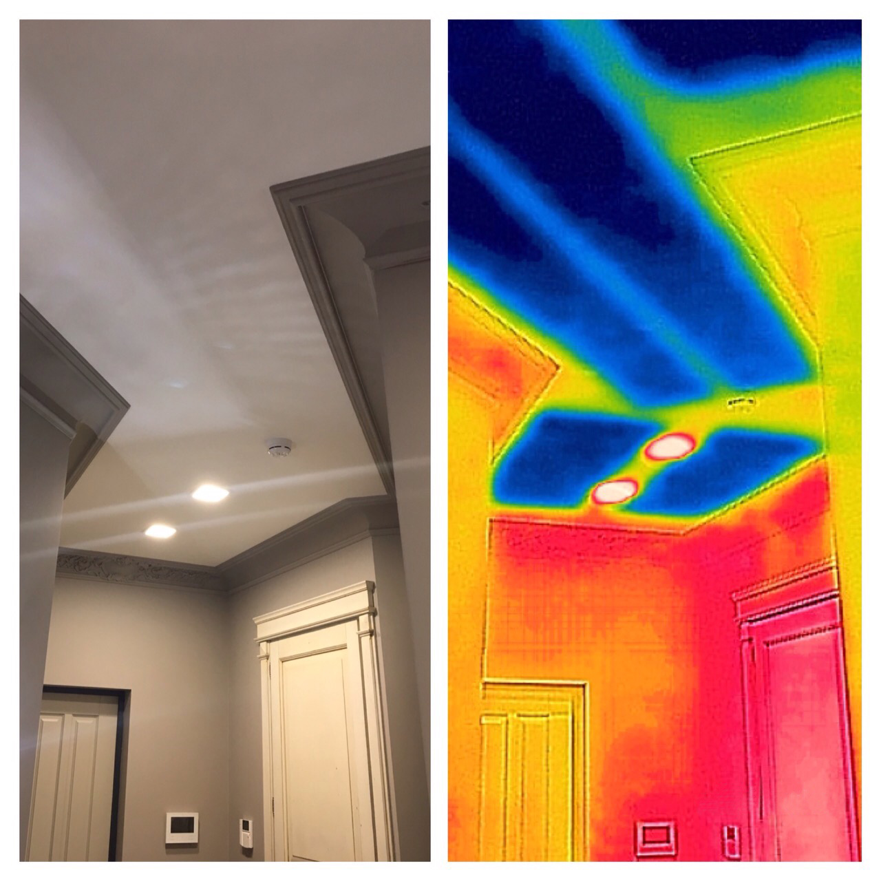 Мы постарались заснять при помощи тепловизора активные зоны системы холодных потолков.