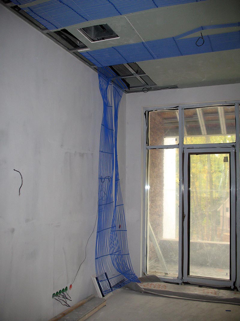 По проекту, произведена поставка и монтаж капиллярных матов TYPE K.S15 на гипсокартонный каркас под штукатурку.