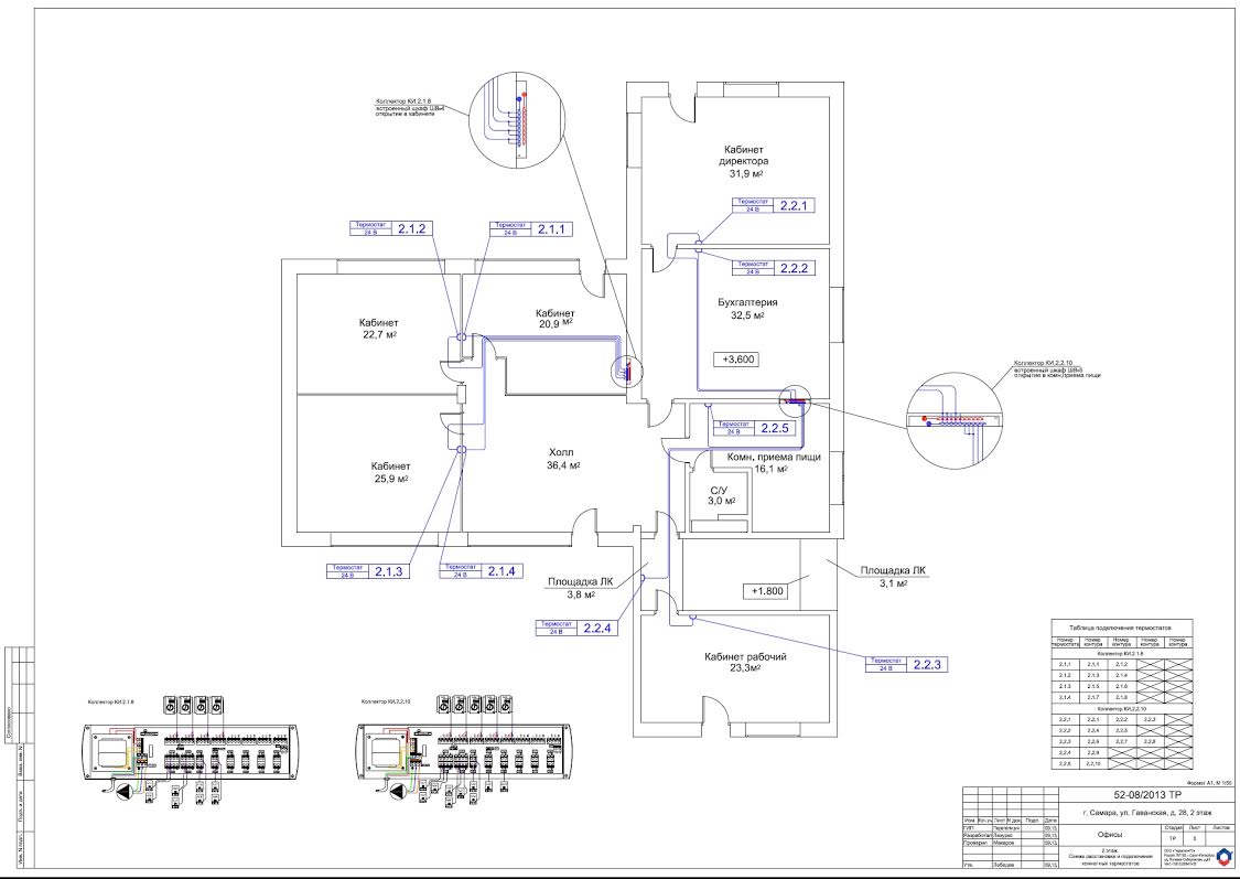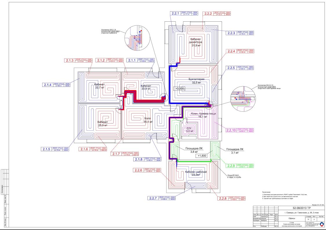 Объект интересен тем, что отопление офисного центра осуществлено только водяным теплым полом.