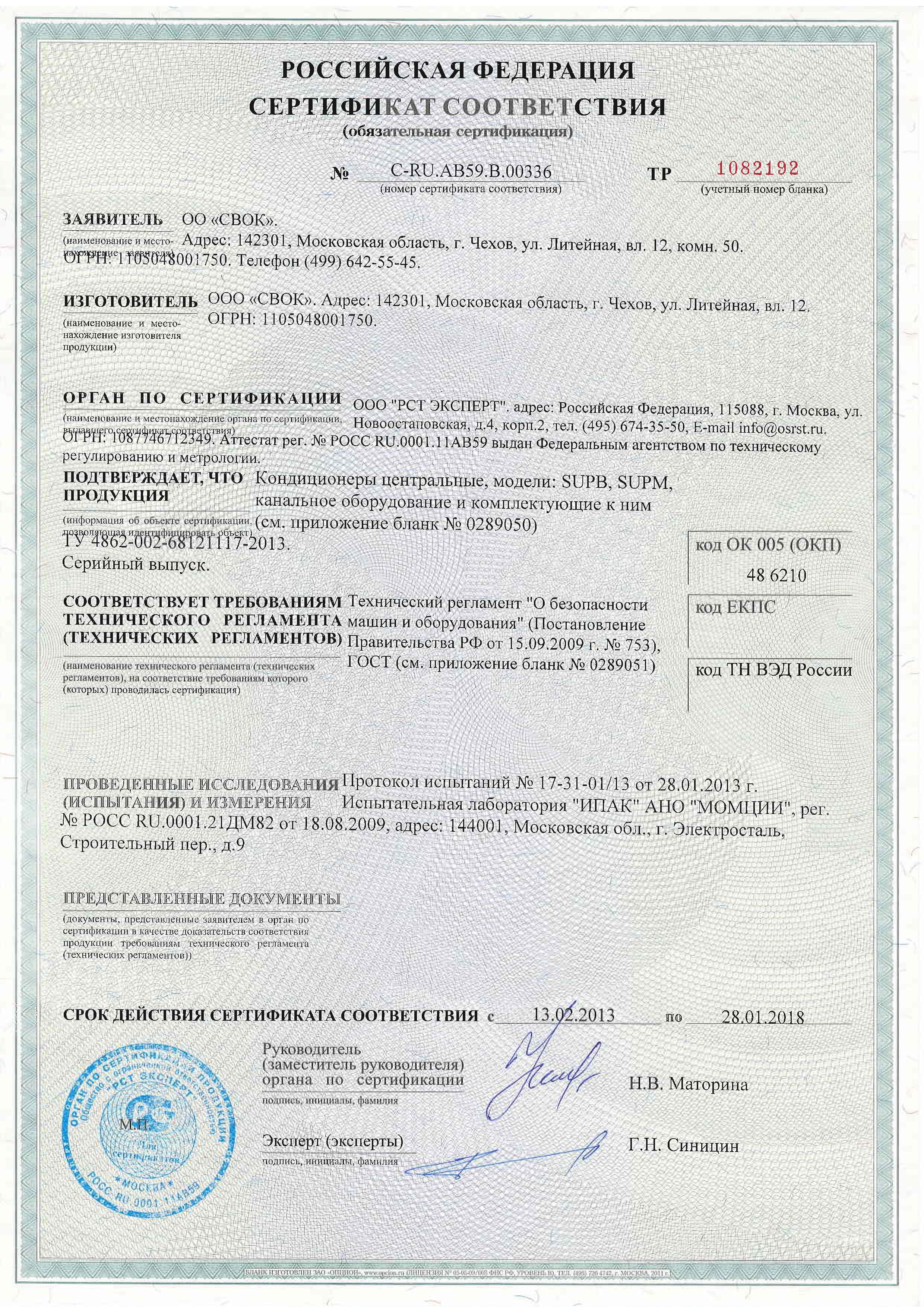 Декларация о соответствии ТС на центральные кондиционеры СВОК