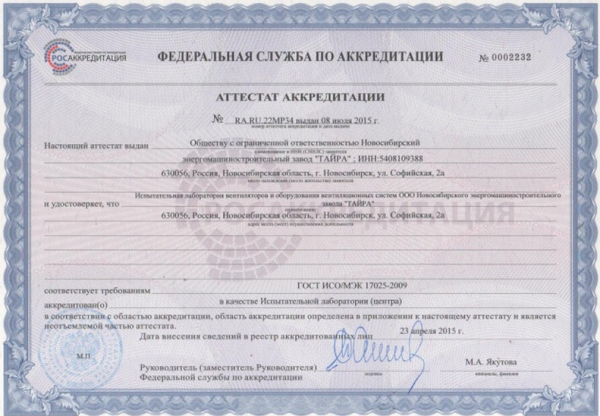 23 апреля 2015 г. испытательная лаборатория ООО НЭМЗ «ТАЙРА» прошла процедуру аккредитации в Федеральной службе по аккредитации (Росаккредитация) и внесена в реестр аккредитованных лиц.