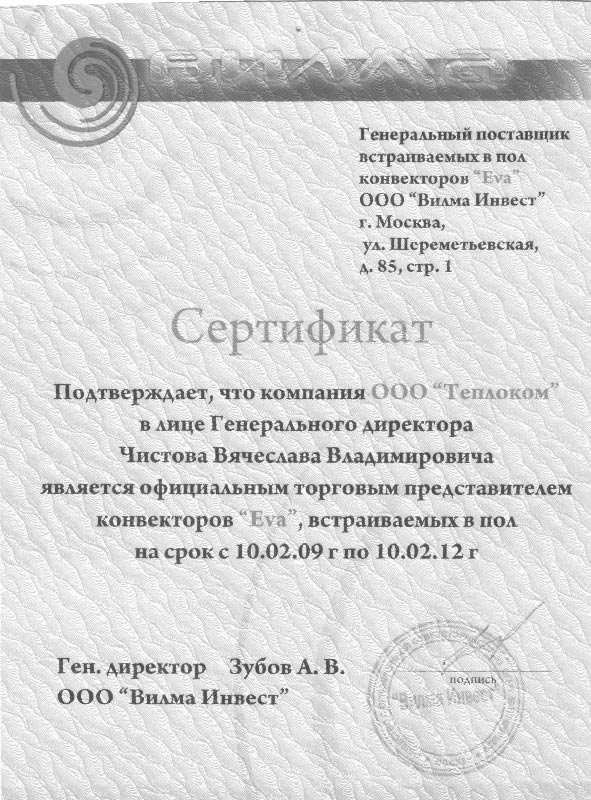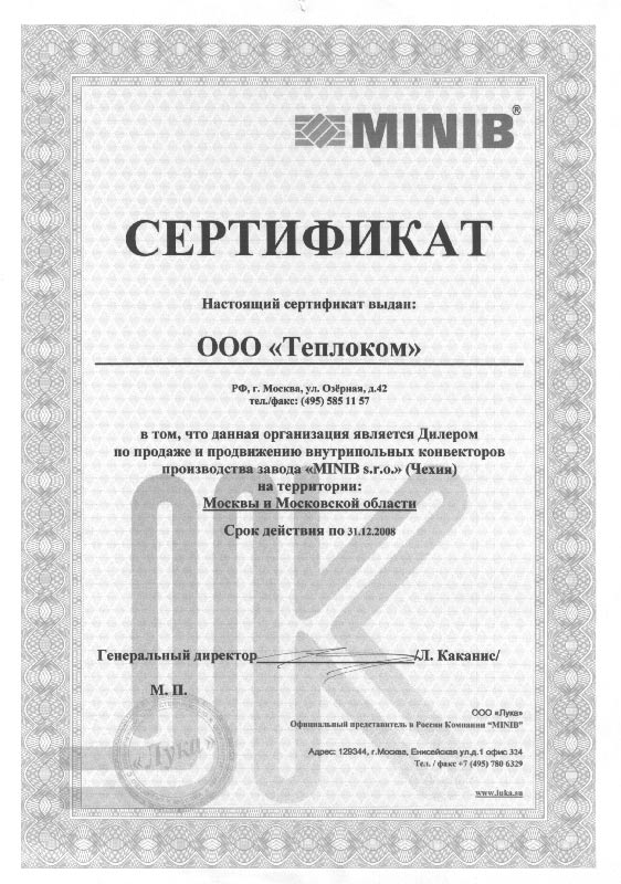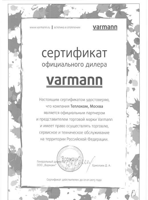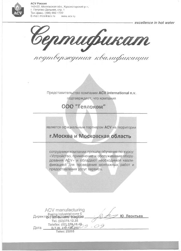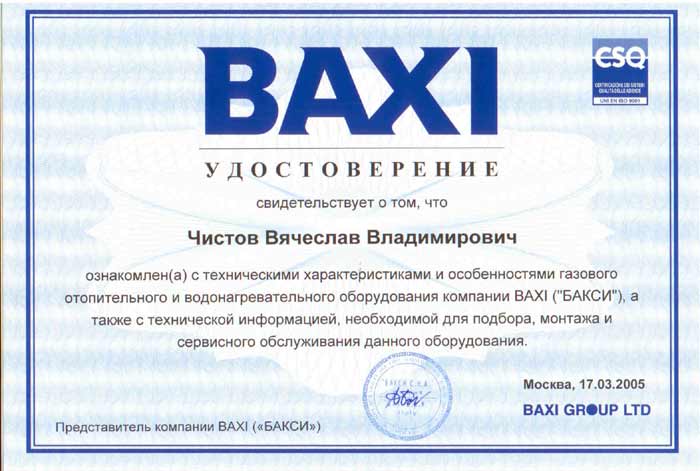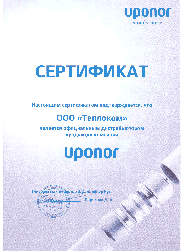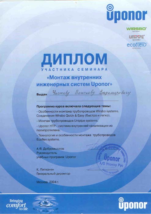 Диплом участника семинара «Монтаж внутренних инженерных систем Uponor»
