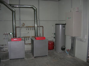 Котельная находится в отдельно стоящем хозяйственном блоке, откуда производится подвод тепла на основное и вспомогательное здания. Оборудование Viessmann (Германия).