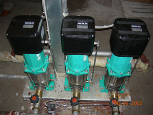 Поставка и пуско-наладка насосной станции пожаротушения и двух насосных станций водоснабжения в двух зданиях жилого комплекса «Седьмое небо» на ул. Осипенко. Насосное оборудование производства WILO (Германия).
