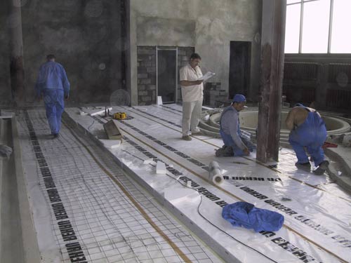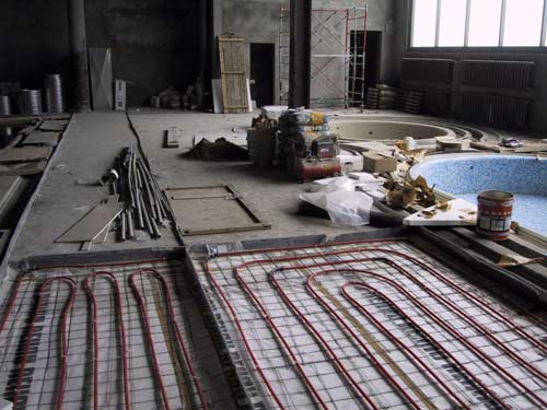 Комплектация и монтаж теплых полов системы REHAU в аквазоне в СОК-Фитнесе (бывший ДК «Шар») .
