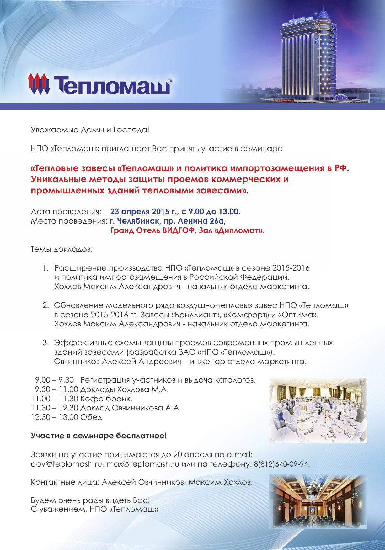 Завод «НПО «Тепломаш» приглашает Вас принять участие в семинаре