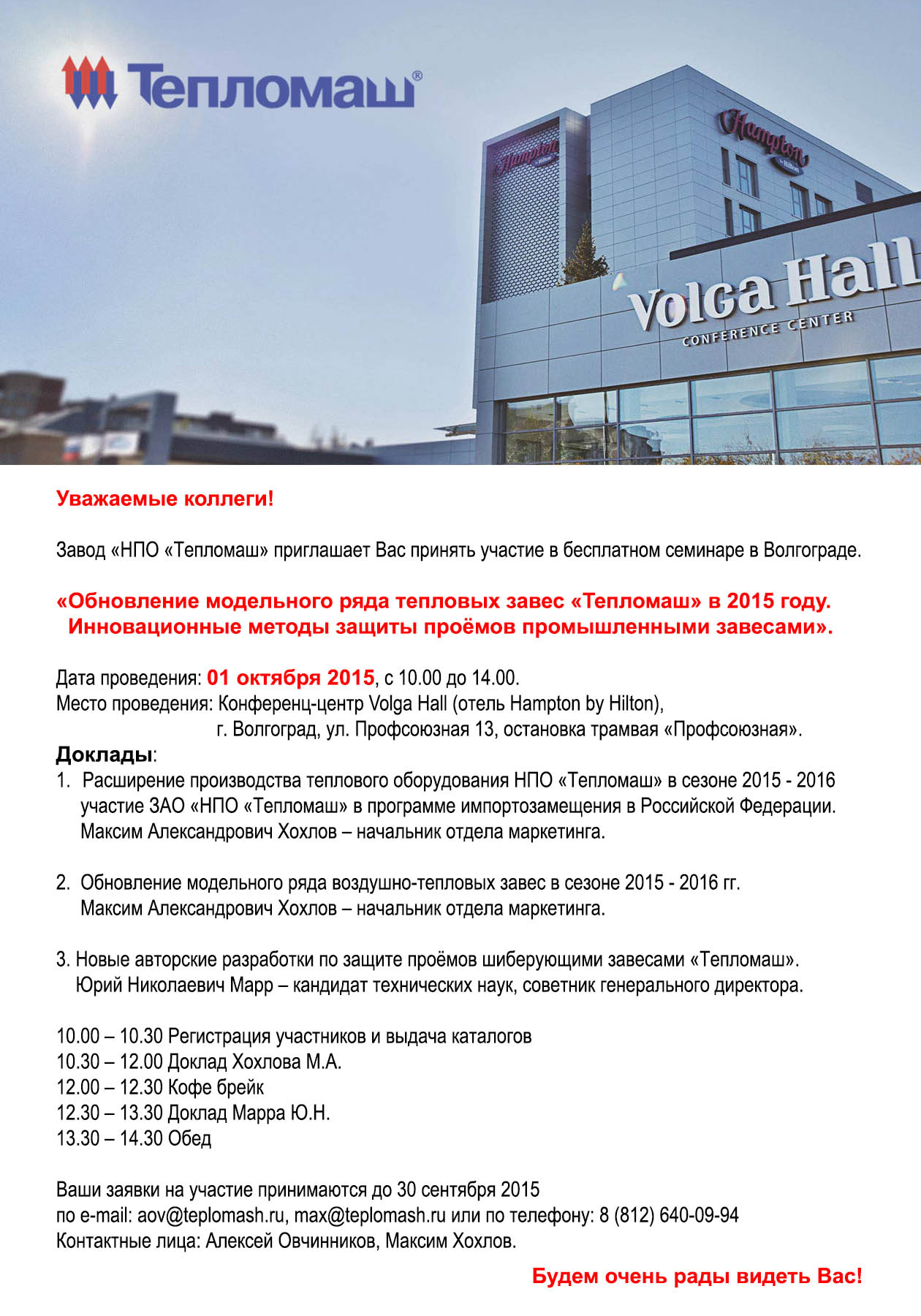 НПО «Тепломаш» приглашает Вас принять участие в семинаре