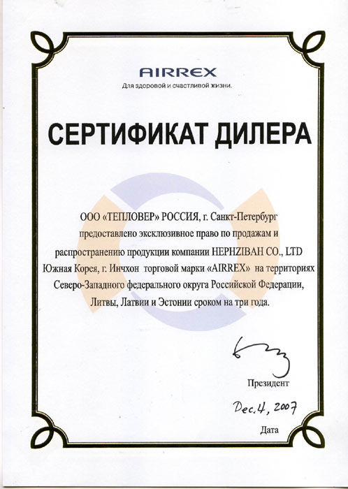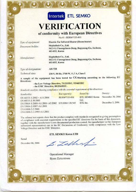 Европейский сертификат качества на инфракрасные обогреватели Airrex