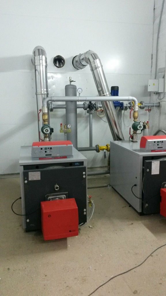 Компания ТГВ завершила монтаж промышленной котельной на дизельном топливе в строящемся торговом центре в городе Руза, котельная состоит из двухходовых стальных дизельных котлов с надувной горелкой Uncial.Modal мощностью 163 кВт, смонтированных в каскаде. Установлена цилиндрическая гидравлическая стрелка Sinus с фланцевыми патрубками, диаметром 200 мм и трехходовой клапан Termomix управляемый автоматикой Vexve AM10. В котельной используется расширительный бак Varem объемом 250 литров. От каждого котла смонтирован теплоизолированный дымоход Rosinox (диаметром 200 мм), а также вытяжная вентиляция из помещения котельной. Котельная введена в эксплуатация 14 октября 2015 года.