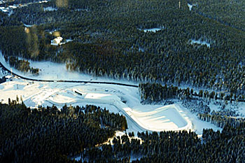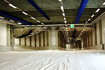 Комфортное распределение воздуха осуществляется с помощью текстильных рукавов, установленных с обеих сторон, каждый длиной 35 м (производства компании Oraven). Пять размещенных на крыше RLT-установок Hansa обеспечивают циркуляцию воздуха и приток свежего воздуха, создавая оптимальные температурные условия для тренировки спортсменов. Холодопроизводительность низкотемпературной ступени на базе поршневого компрессора Grasso 610 достигает 130 кВт при температуре кипения -32°C. Хладоноситель с температурой -30°C используется для выработки снега в 4 снежных пушках (производства компании Innovag).