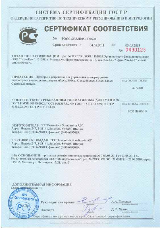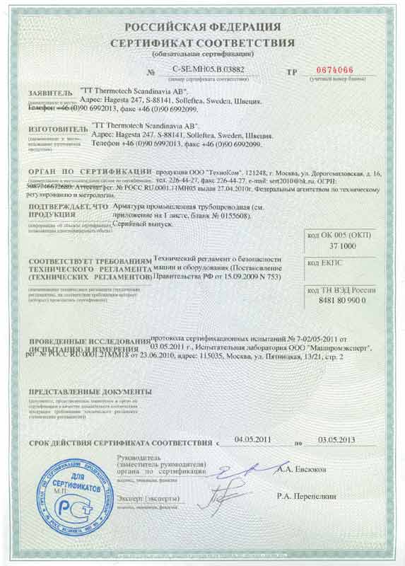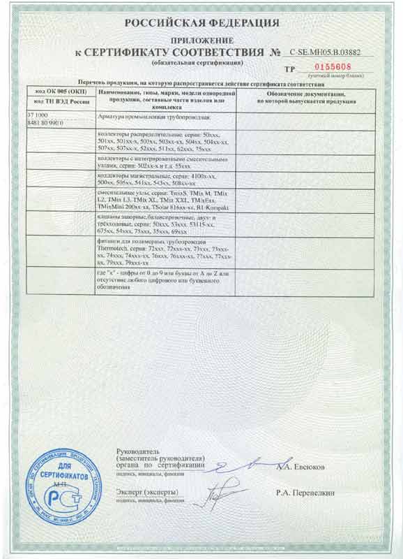 Сертификат соответствия на коллекторы и смесительные узлы, приложение