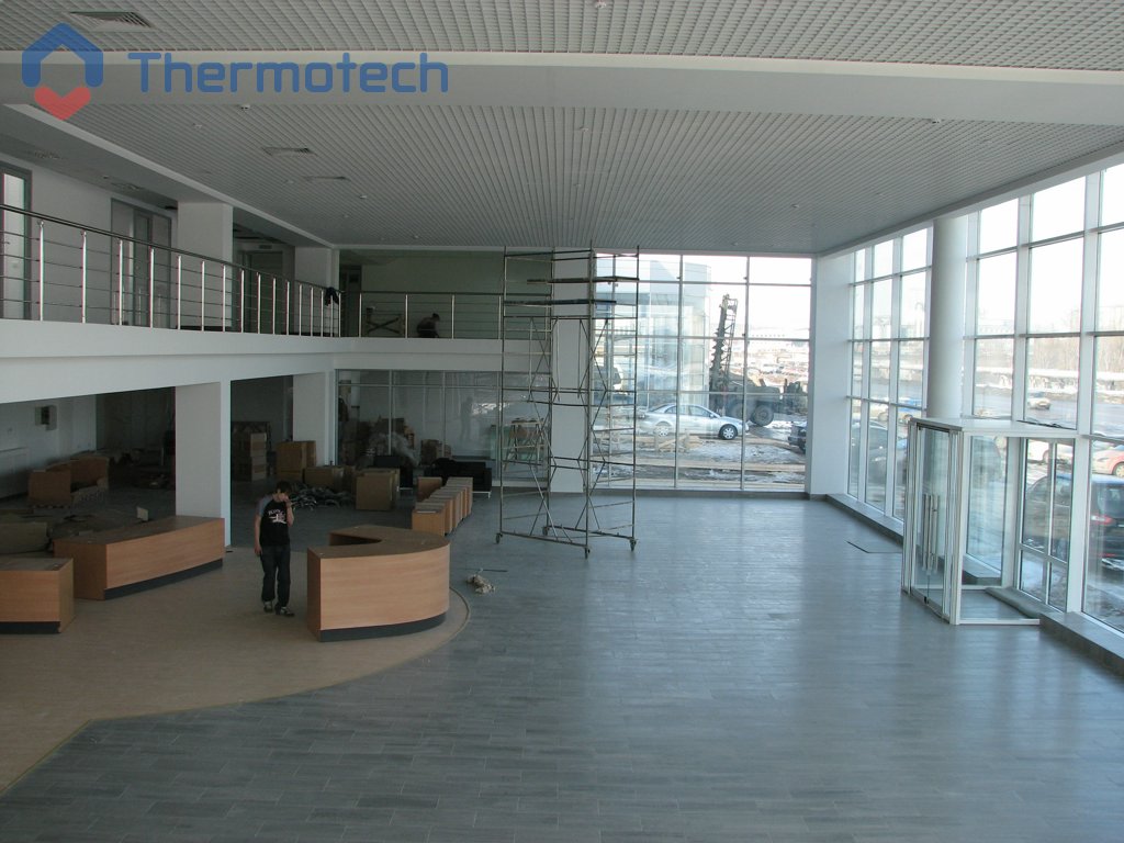 Главная особенность объекта – устройство системы ВТП в качестве основной системы отопления при условии большого остекления в условиях «суровой» климатической зоны. Дополнительная задача – создание комфортных условий на рабочих местах персонала сервисно-ремонтной зоны автоцентра.