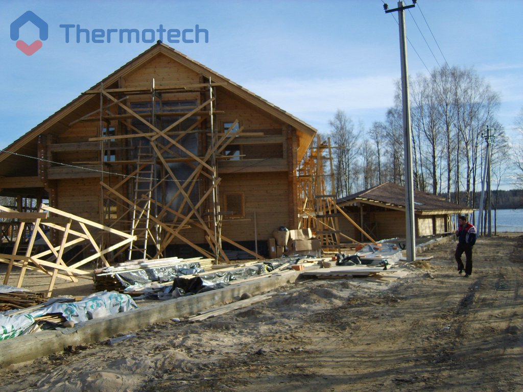 Например, дом в Ленинградской области построен из клееного бруса, общая площадь 331 м2.