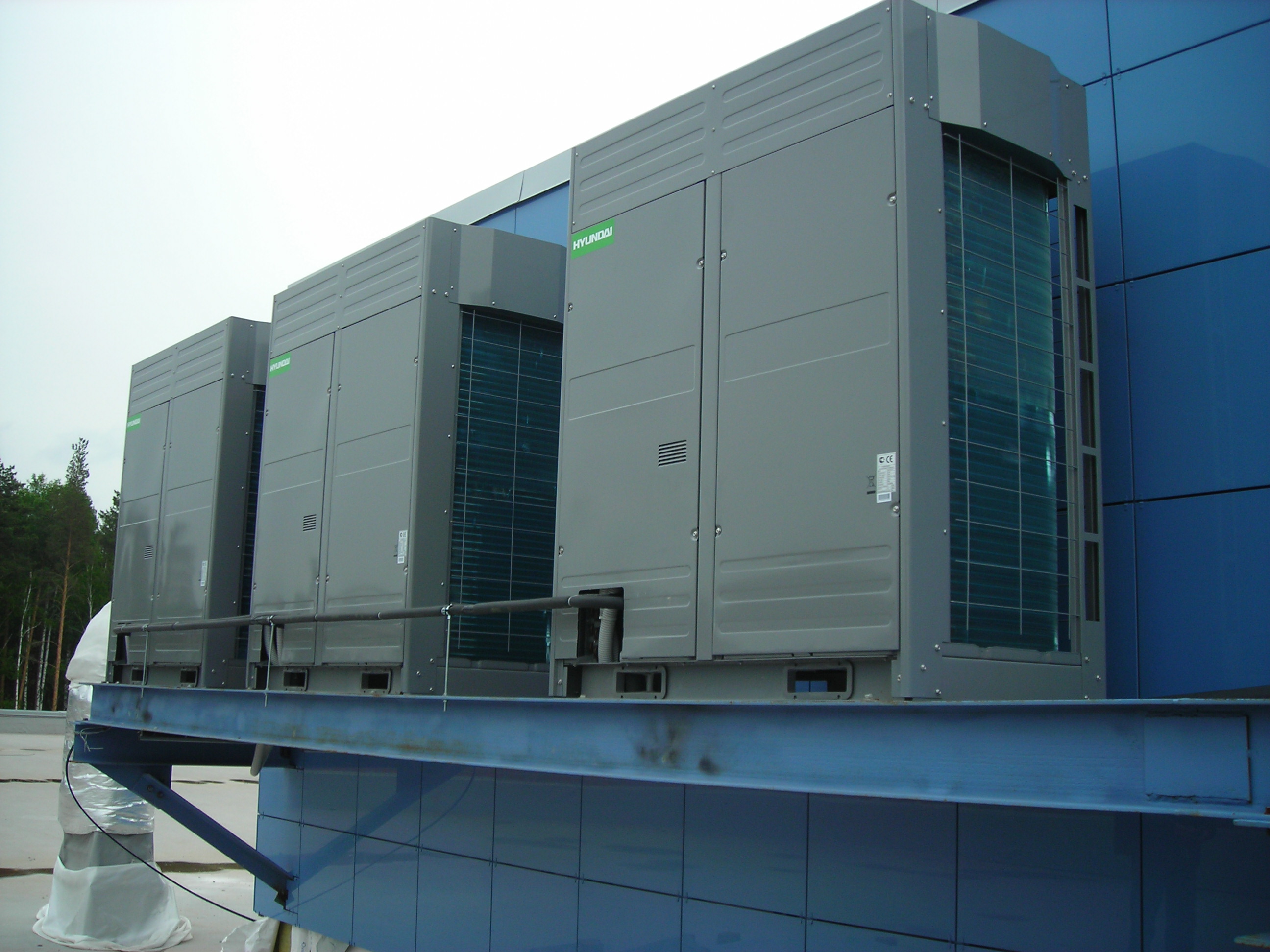 - Первый этаж: Мультизональная инверторная система кондиционирования фирмы Hyundai (Корея) общей холодопроизводительностью 134,4 кВт, включающая 12 внутренних четырехпоточных блоков кассетного типа: