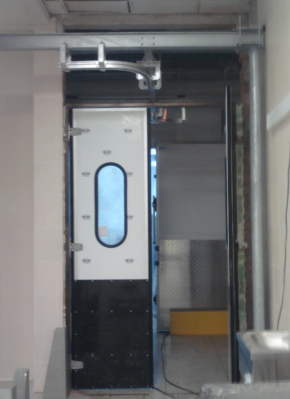 Изготовление и монтаж 29 маятниковых двустворчатых и одностворчатых дверей для технологических цехов.