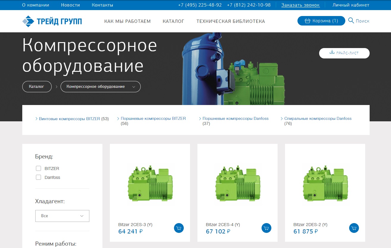 Обновленный дизайн сайта обеспечивает удобную навигацию по каталогу, представляет заказчикам максимум полезной информации о холодильном оборудовании и компонентам, представленным на сайте. Фильтры каталога позволят вам быстро подобрать оборудование, которое вы ищите. Сохранена возможность отправки онлайн заявки на подбор нестандартного оборудования, скачивания информационных каталогов и программ подбора оборудования.