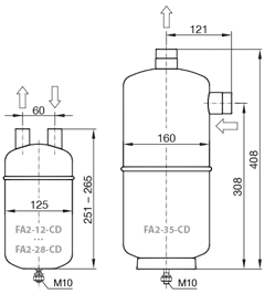 Модельный ряд FA-CDH представлен в трех различных размерах. Отделители жидкости для транскритических систем на CO2 с максимальным давлением всасывания от 100 бар.