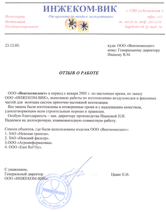 С уважением, генеральный директор ООО «ИНЖЕКОМ-ВИК» Цванг Е.Н.