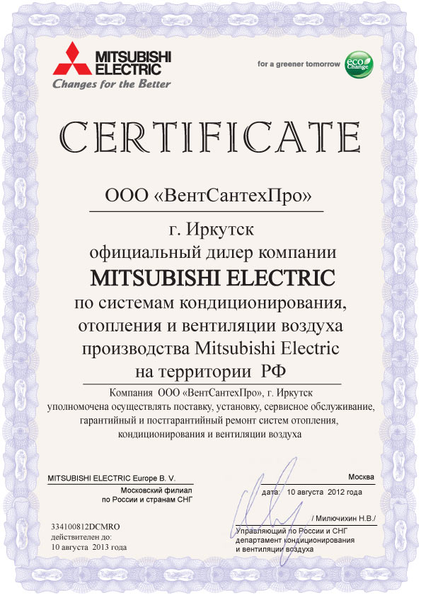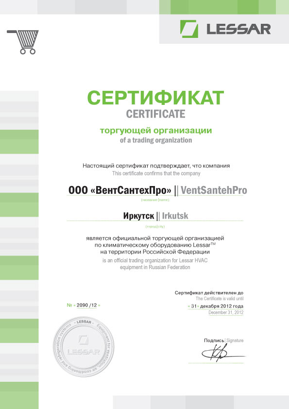 Лицензии и сертификаты компании ВСП, Центр Климатических Решений