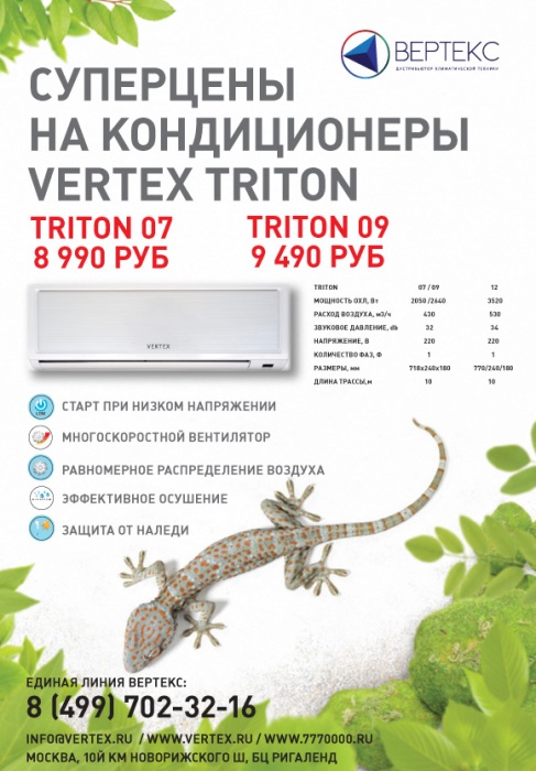 Кондиционеры Vertex Triton. Стильно. Качественно. Доступно.