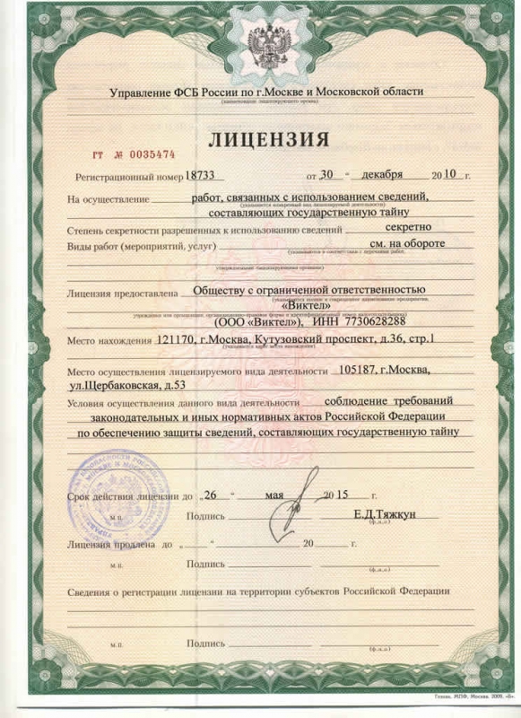 Лицензия на осуществление работ, связанных с использований сведений, составляющих государственную тайну