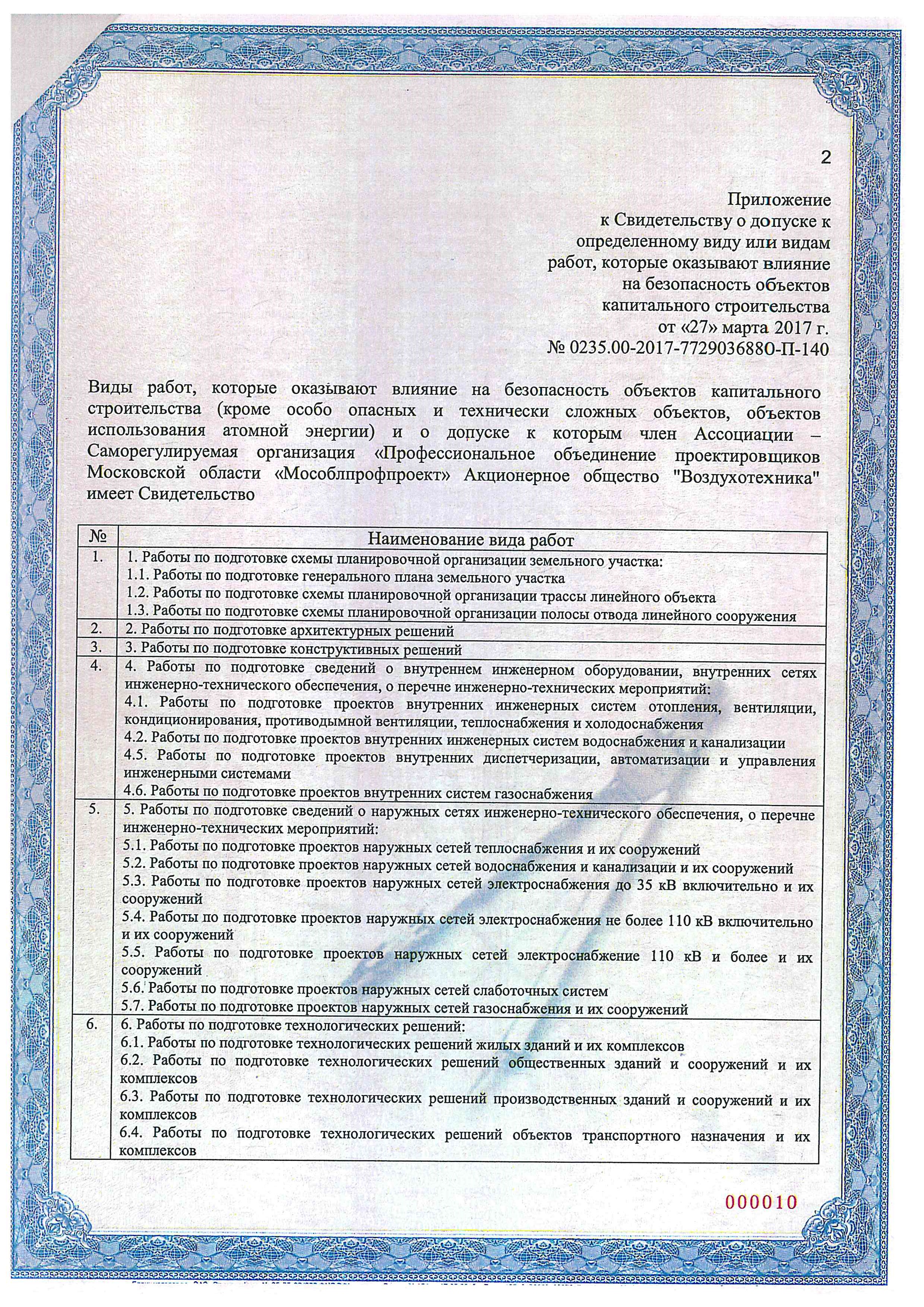 - Сертификат СРО о допуске к определенному виду или видам работ, которые оказывают влияние на безопасность объектов капитального строительства, страница 2