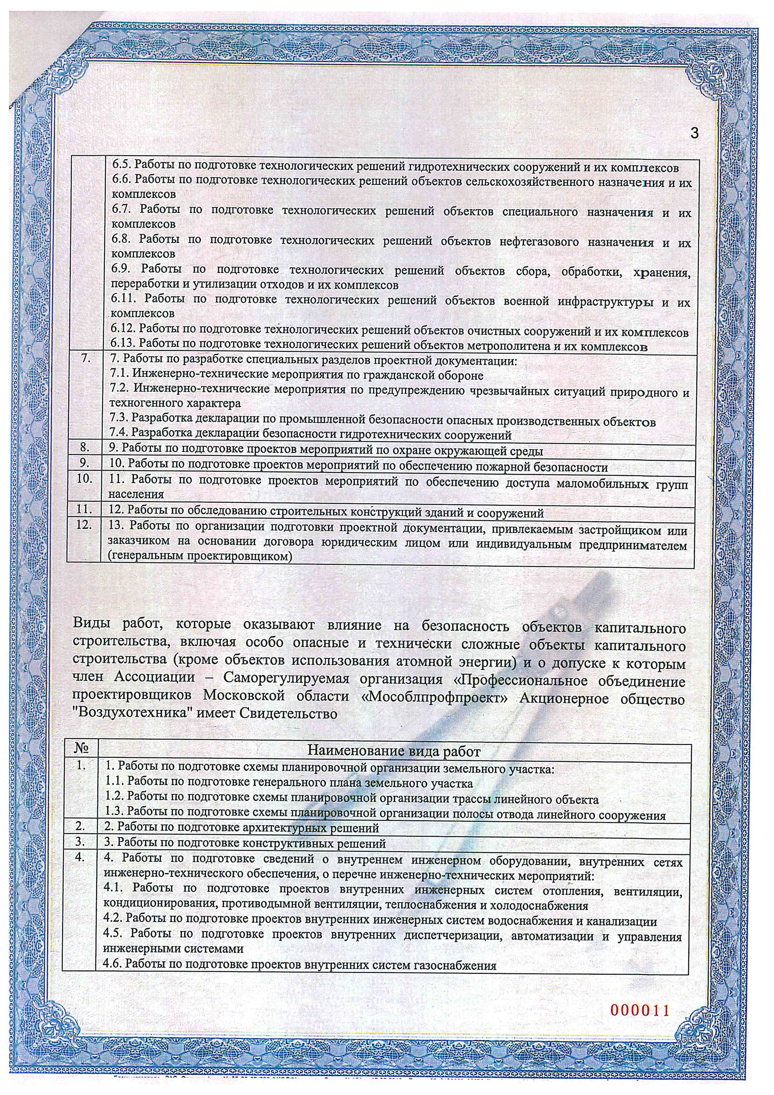 - Сертификат СРО о допуске к определенному виду или видам работ, которые оказывают влияние на безопасность объектов капитального строительства, страница 3