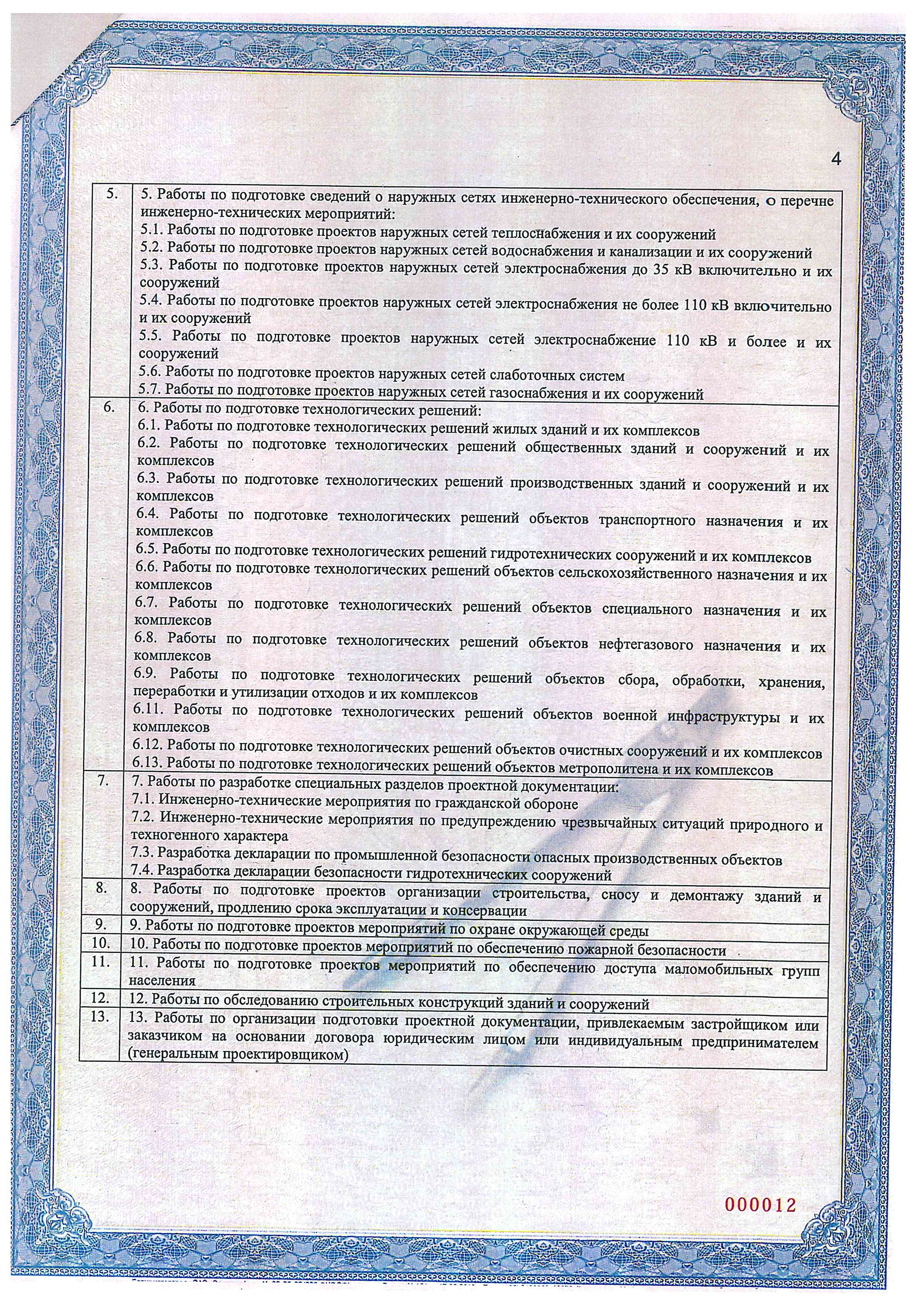 - Сертификат СРО о допуске к определенному виду или видам работ, которые оказывают влияние на безопасность объектов капитального строительства, страница 4