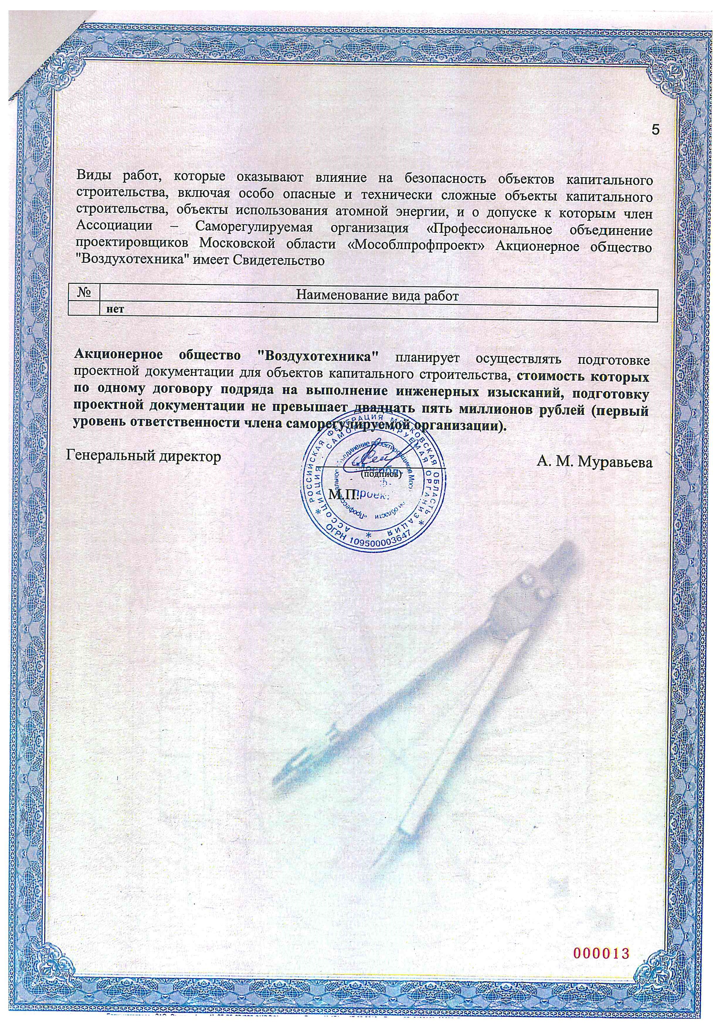 - Сертификат СРО о допуске к определенному виду или видам работ, которые оказывают влияние на безопасность объектов капитального строительства, страница 5