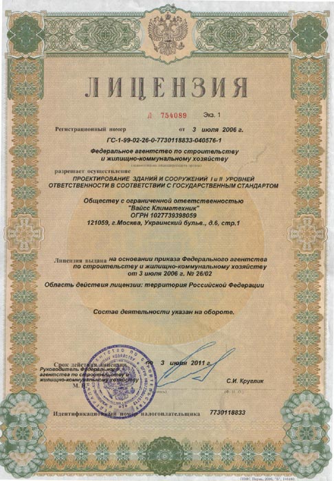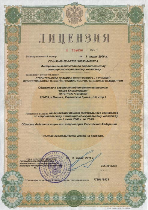 Лицензии и сертификаты компании Вайсc Климатехник
