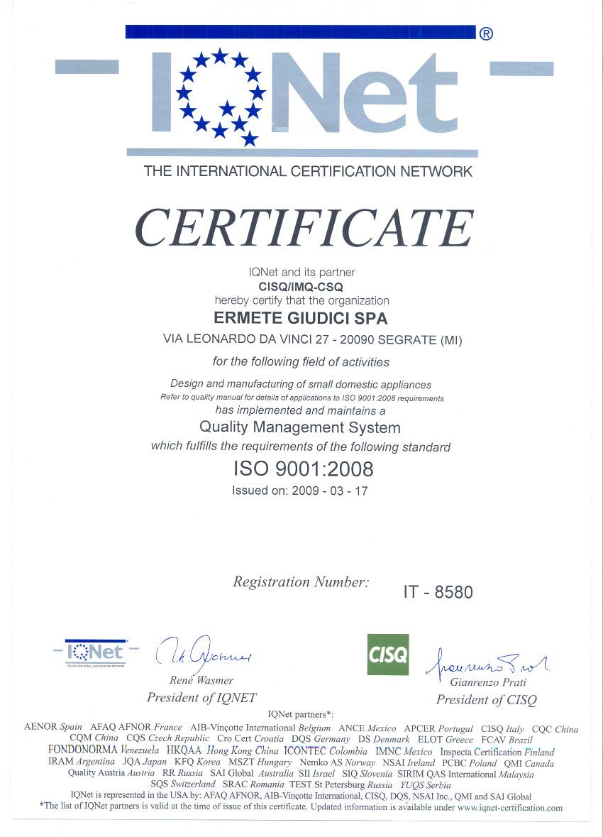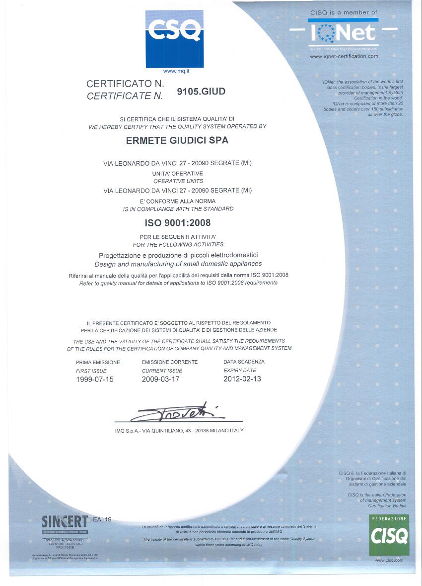 Сертификация ISO 9001:2008 на тепловое оборудование завода Ermete Giudici S.p.A. стр.2