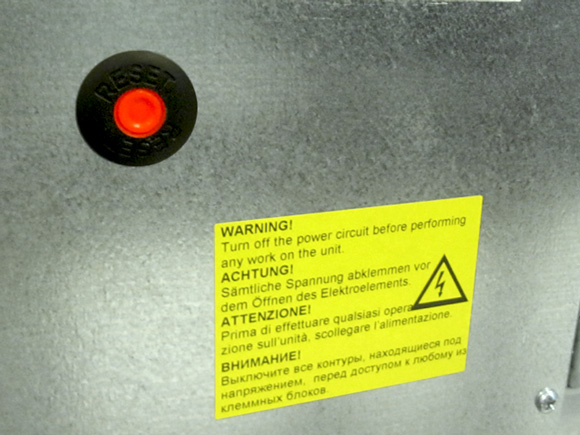 Вентагрегат работает в таком состоянии до восстановления нормальной температуры и сброса защиты воздухонагревателя в ручную нажатием кнопки «Reset», расположенной на крышке нагревателя.