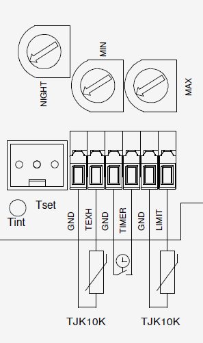 - Регуляторы EKR 6.1 , EKR 15.1 и EKR 15.1Р имеют возможность подключения внешних датчиков температуры TJK10K, один из которых может быть использован для ограничения максимальной или минимальной температуры.