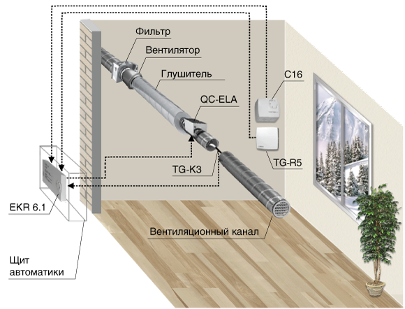 - поддержание температуры в помещении (при наличии датчика температуры в вентиляционном канале);