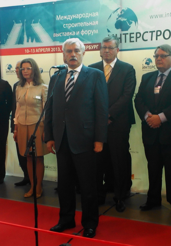 11 апреля состоялось открытие выставки Интерстройэкспо-2013. В торжественной церемонии приняли участие Георгий Полтавченко, губернатор Санкт-Петербурга, Ханну Пенттила, вице-мэр города Хельсинки, Николай Крутов, председатель Комитета по строительству Ленинградской области, Владимир Яковлев, президент Российского Союза строителей, Александр Вахмистров, первый вице-президент Национального объединения строителей (НОСТРОЙ); Ирина Любина, генеральный директор ООО «Примэкспо».