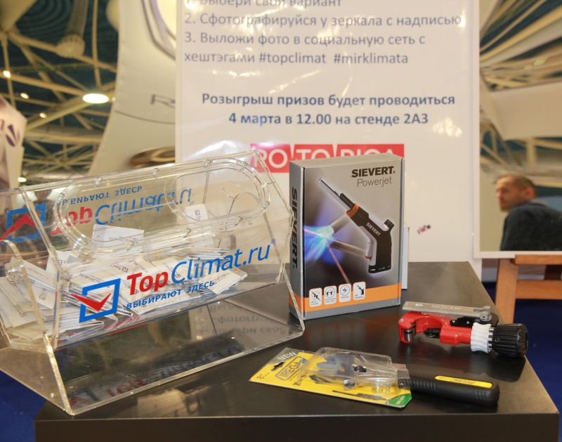 Портал TopClimat.ru участвовал в выставке «Мир Климата» в качестве генерального Интернет-партнера. За все четыре дня сотрудники портала и промоутеры без дела не сидели: консультировали по сервисам TopClimat и работе Всероссийской службы заказа климатической техники TopCS.ru, приглашали принять участие в лотерее с призами от компании Rotorica, снимали видеоролики о выставке и участниках мероприятия.